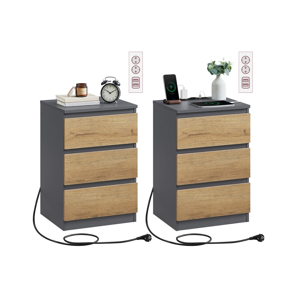 VASAGLE Bijzettafel 3 lades modern ebbenhout