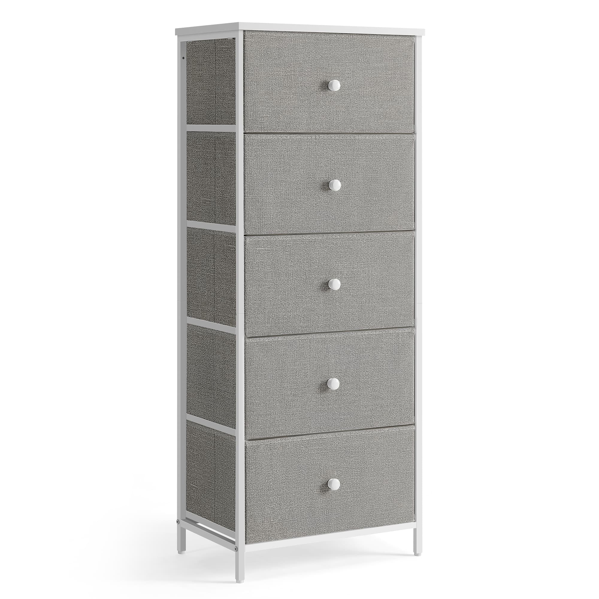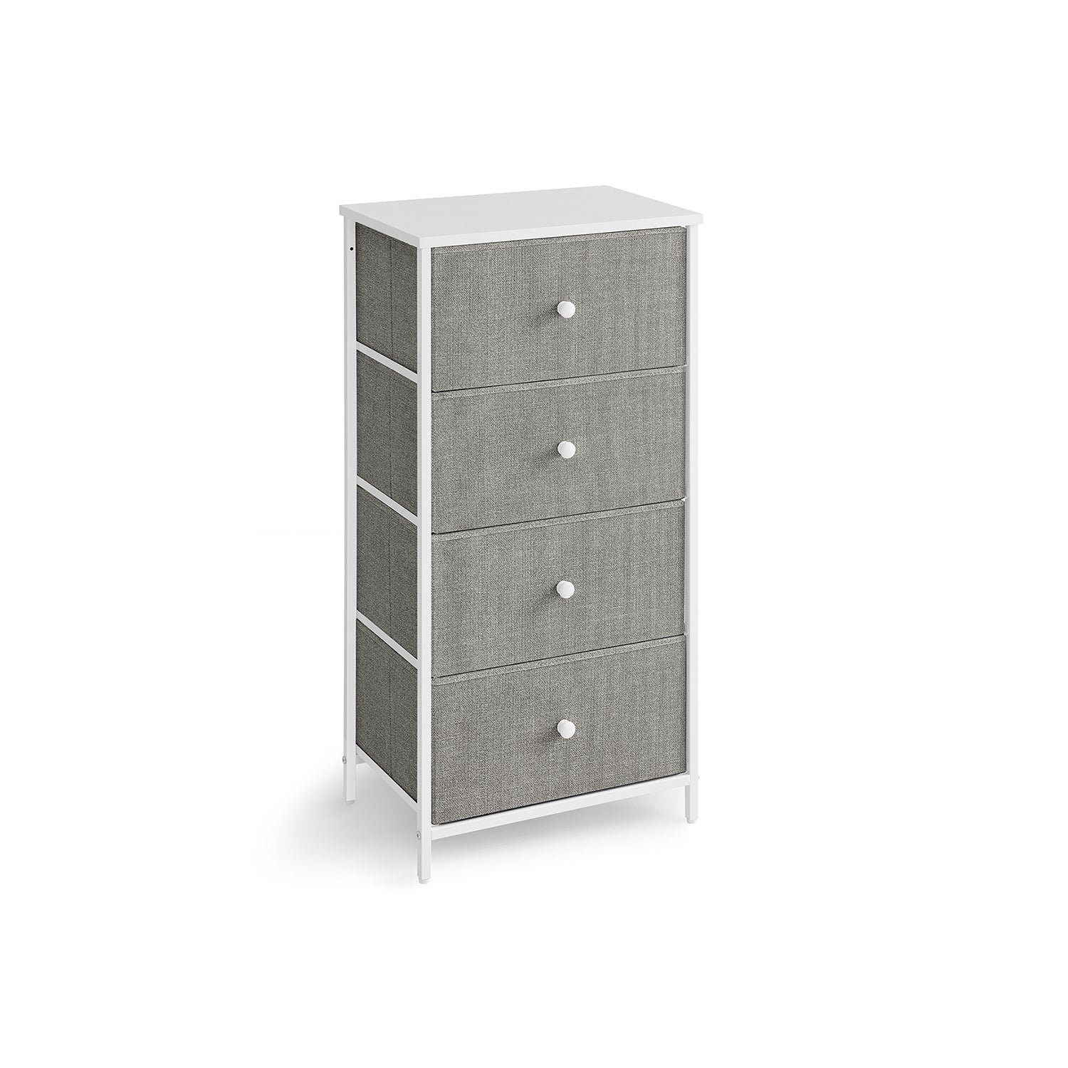 Ladekast met 4 stoffen lades en metalen frame in lichtgrijs en wit
