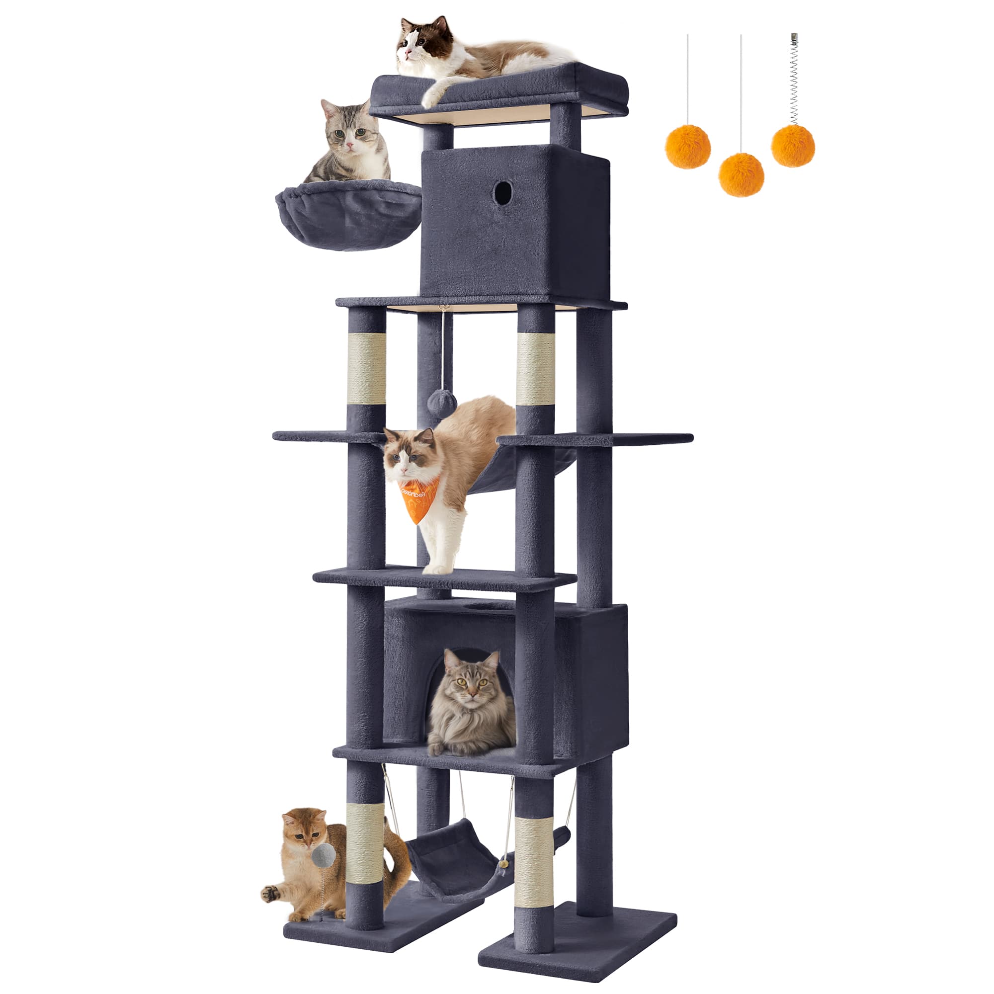 Grote kattenkrabpaal met meerdere verdiepingen en ligplekken