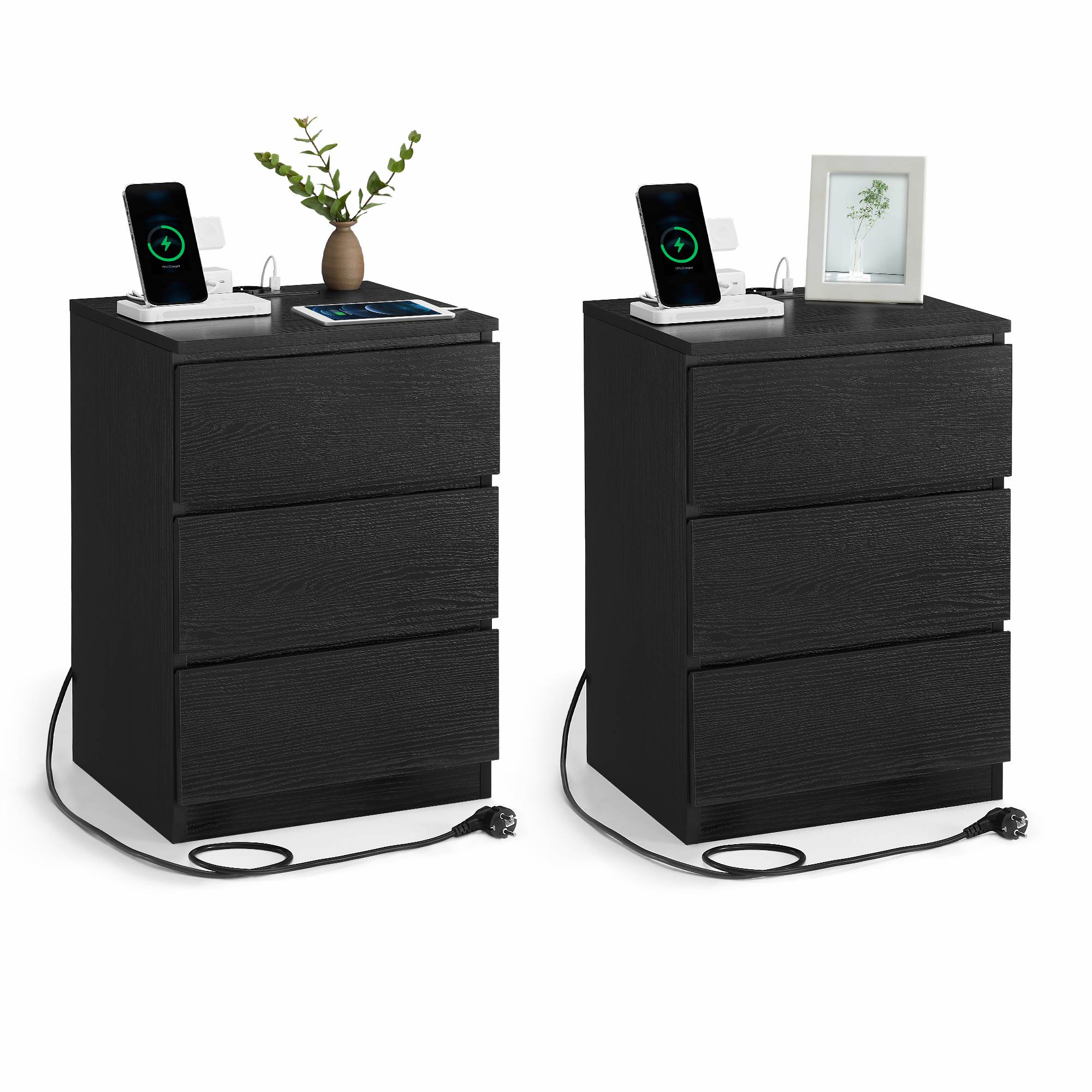 VASAGLE Bijzettafel 3 lades modern ebbenhout