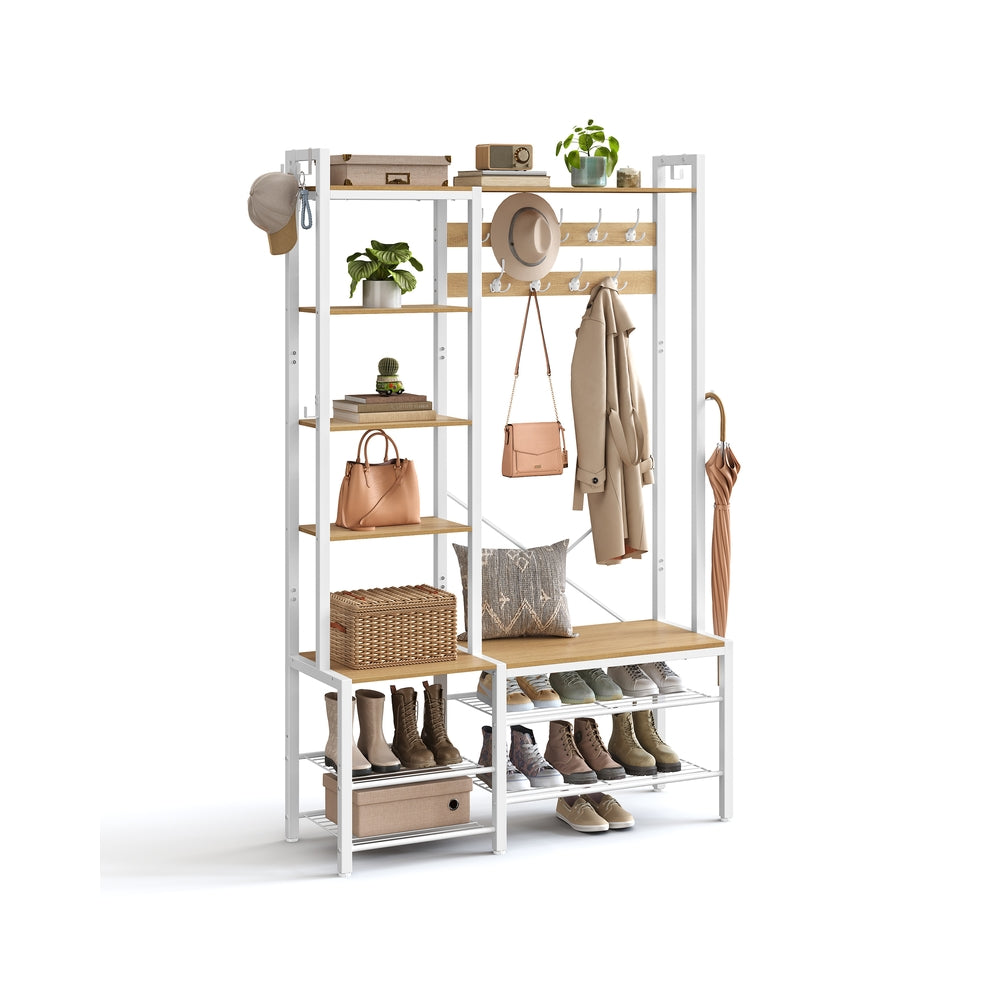 Kapstok met schoenenbank van spaanplaat vintage bruin-inktzwart