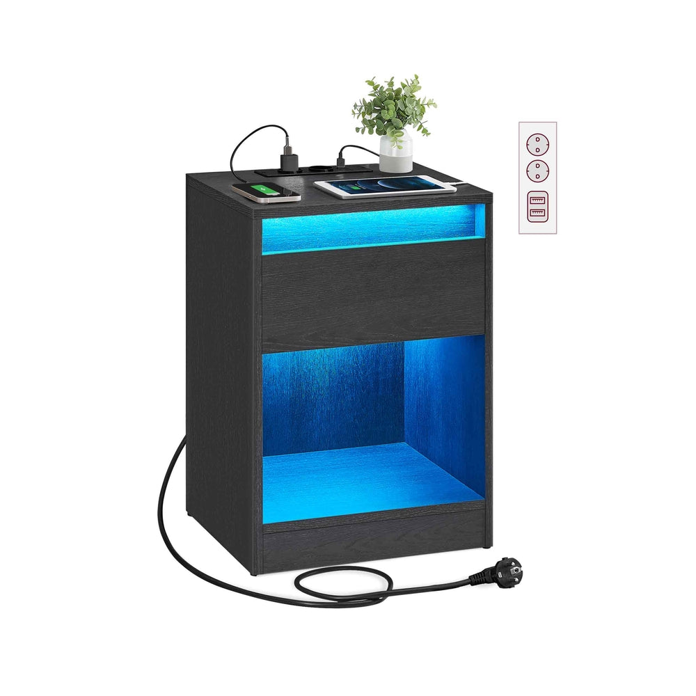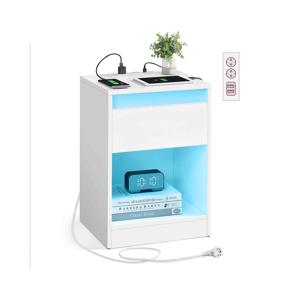 VASAGLE Nachtkastje met verstelbare ledverlichting en stopcontacten