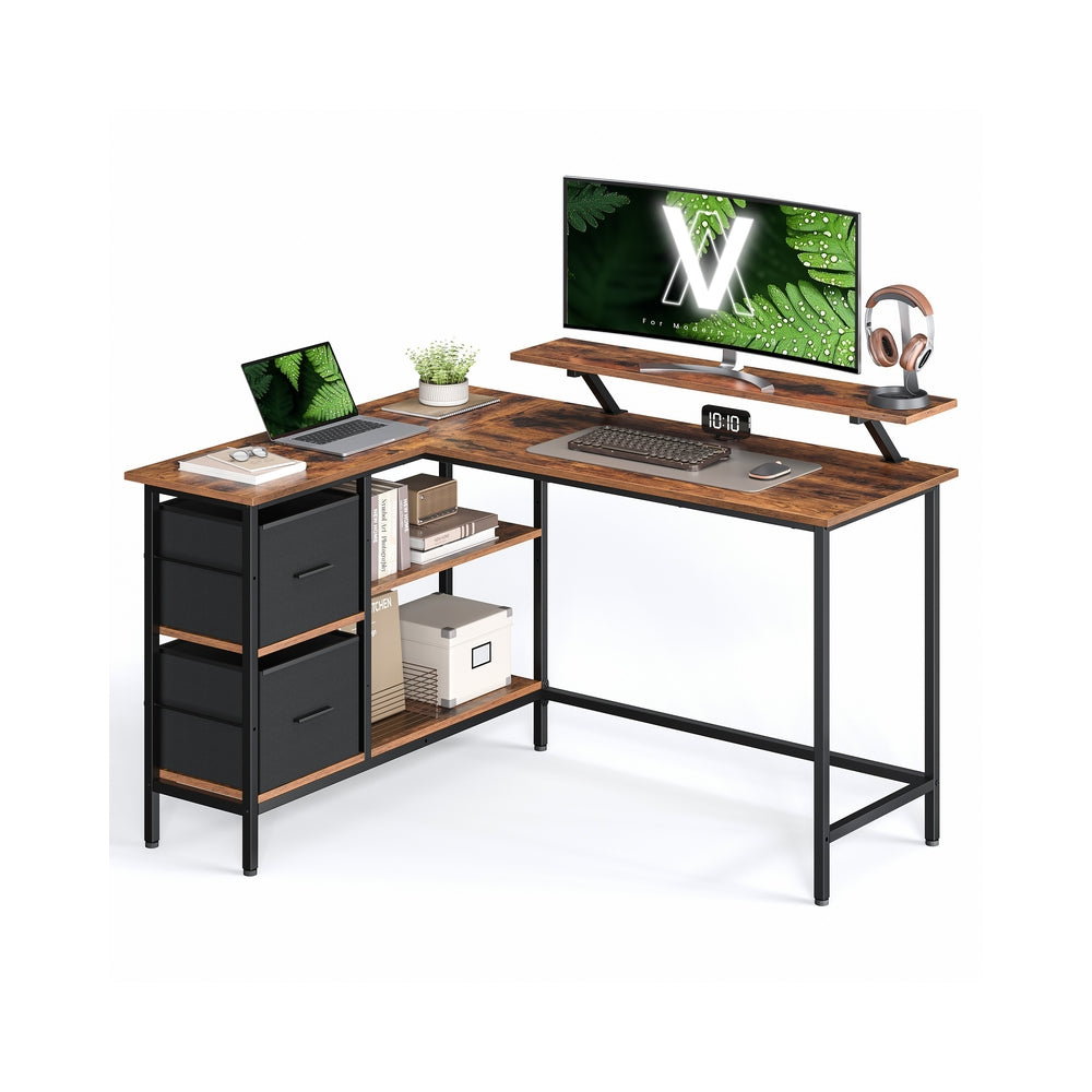 VASAGLE L vormig bureau met lades en verstelbare plank