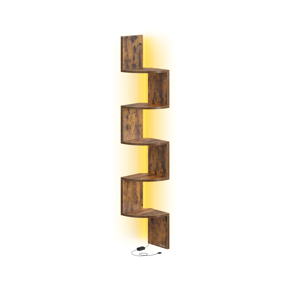Hoekwandrek met verlichting voor boeken en decoratie Vintage bruin