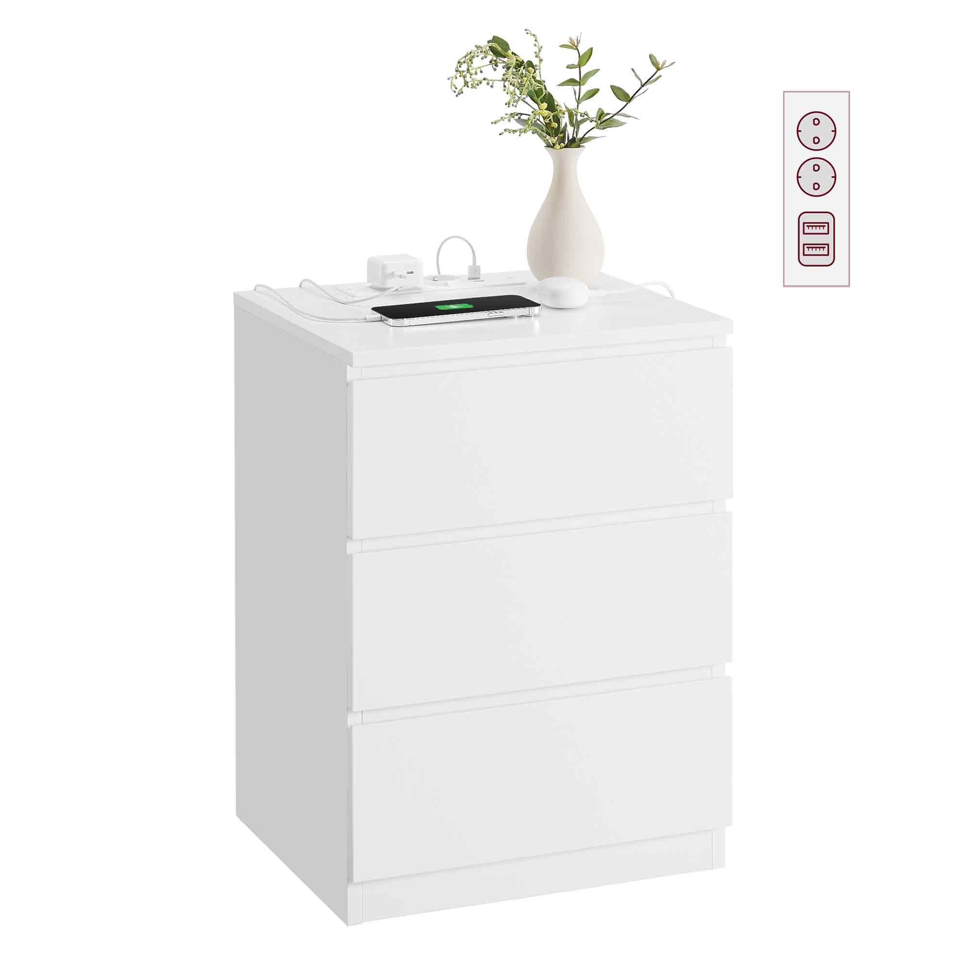 Nachtkastje | 3 Laden + USB Opladen + 62kg Draagkracht