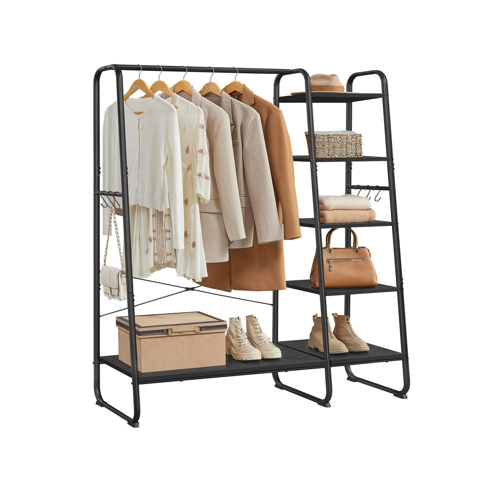 VASAGLE Kledingrek 5 niveaus open met kledingroede en schoenenrek