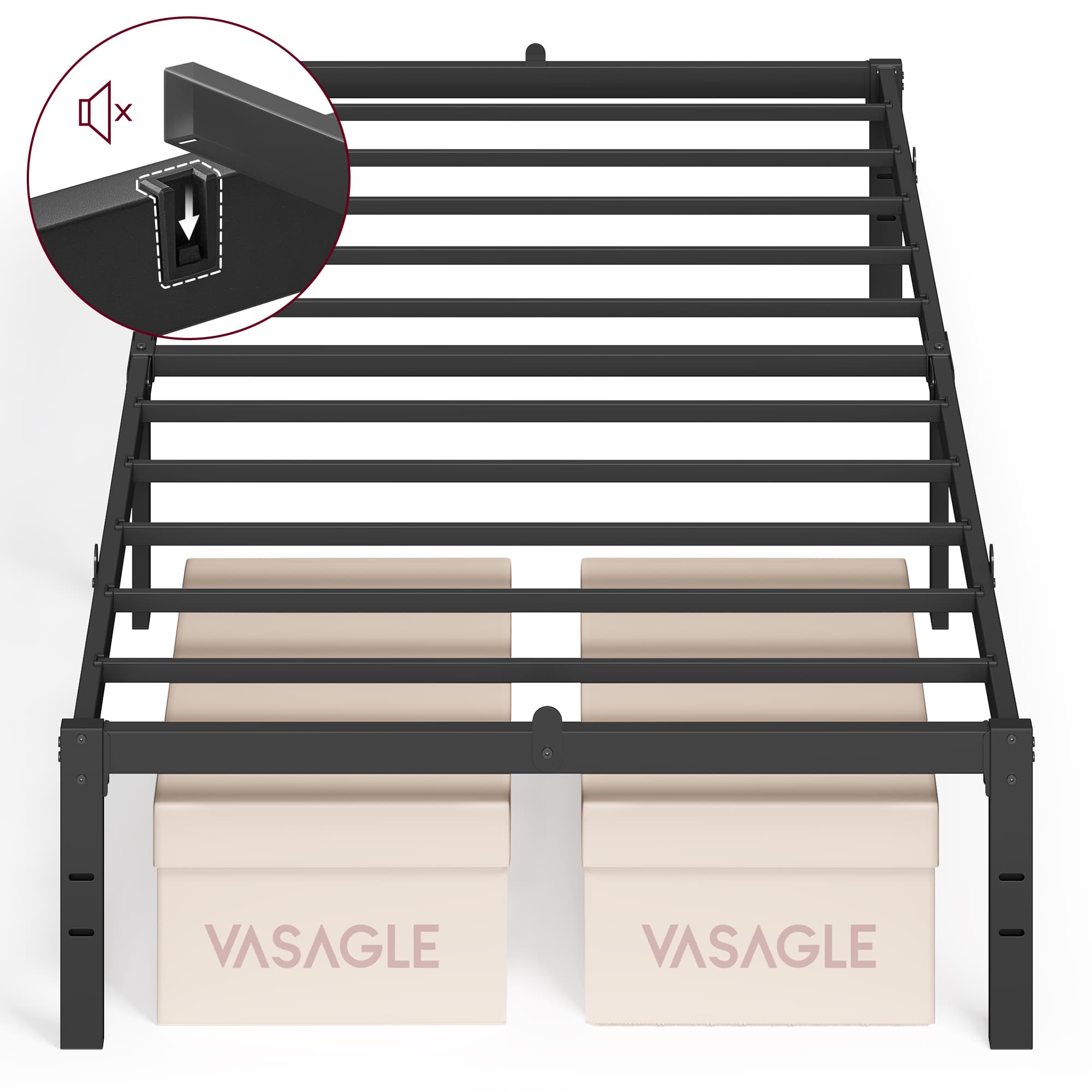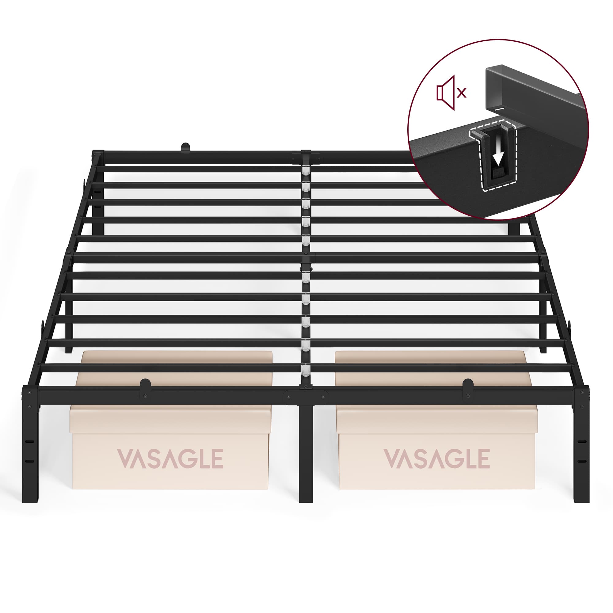 VASAGLE Metalen bedframe met opbergruimte eenvoudig te monteren