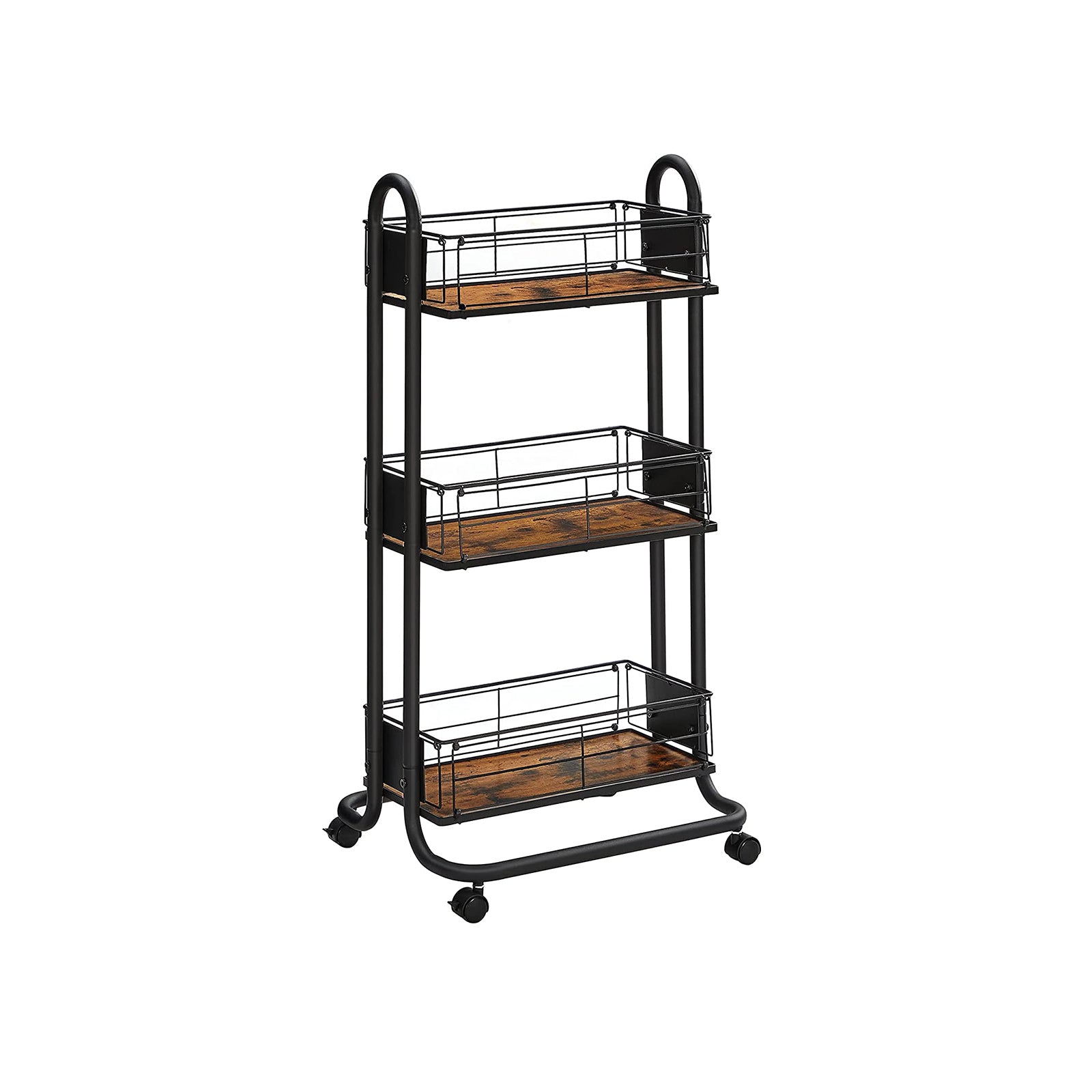 Serveerwagen 3 niveaus vintage bruin-zwart